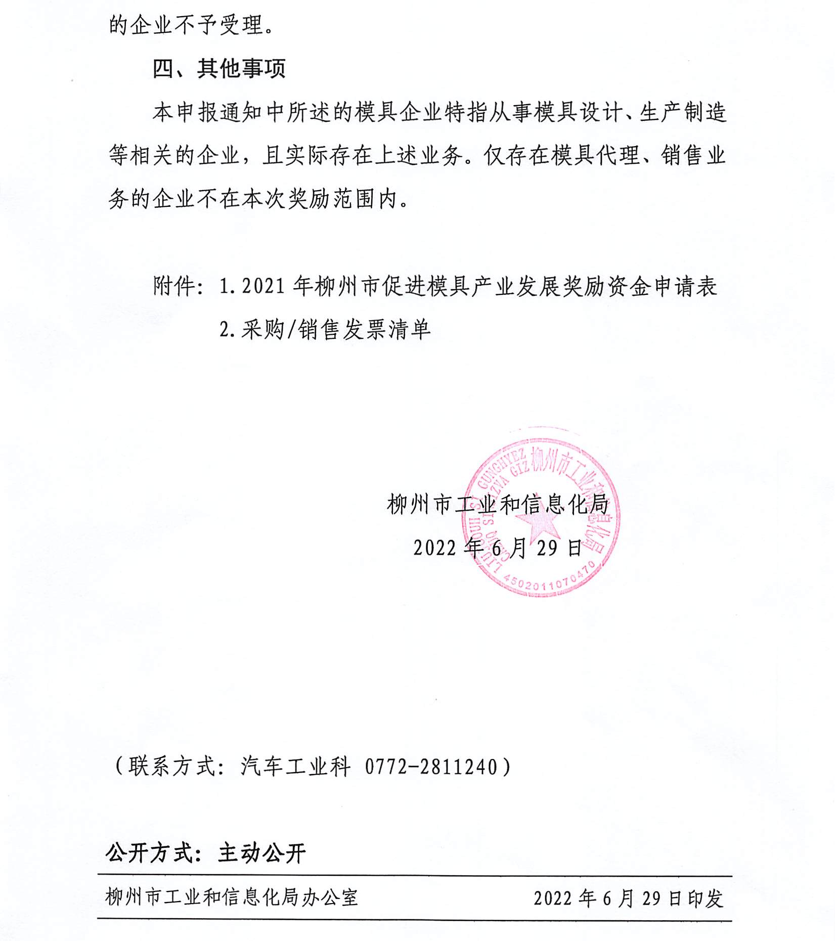 關(guān)于申報(bào)2021年柳州市促進(jìn)模具產(chǎn)業(yè)發(fā)展獎(jiǎng)勵(lì)資金的通知(2022-6-29))